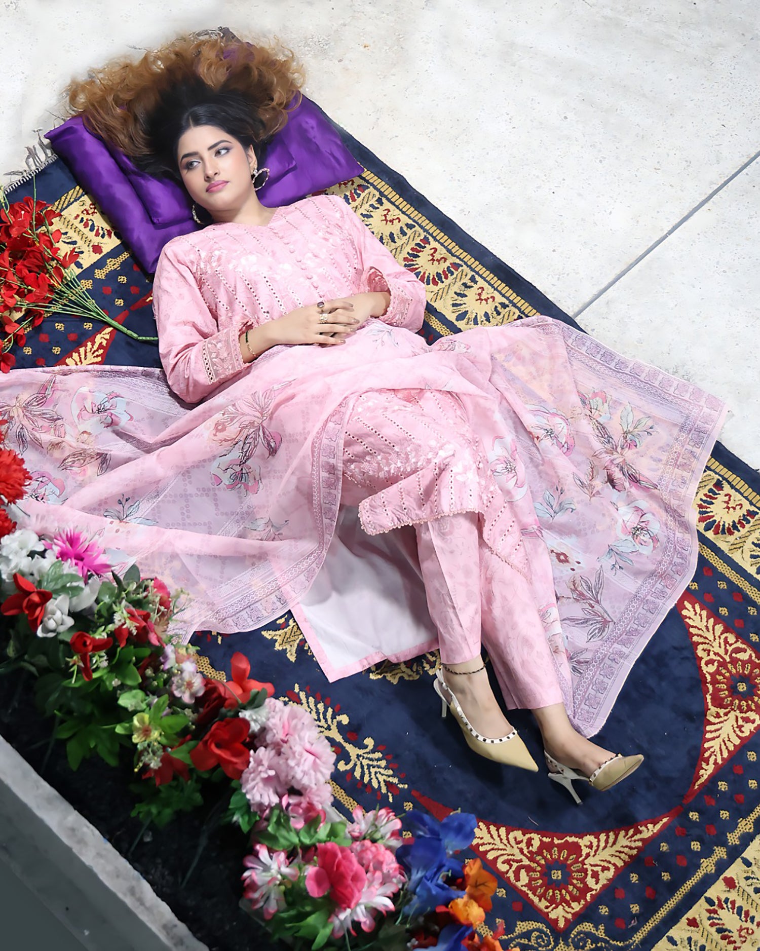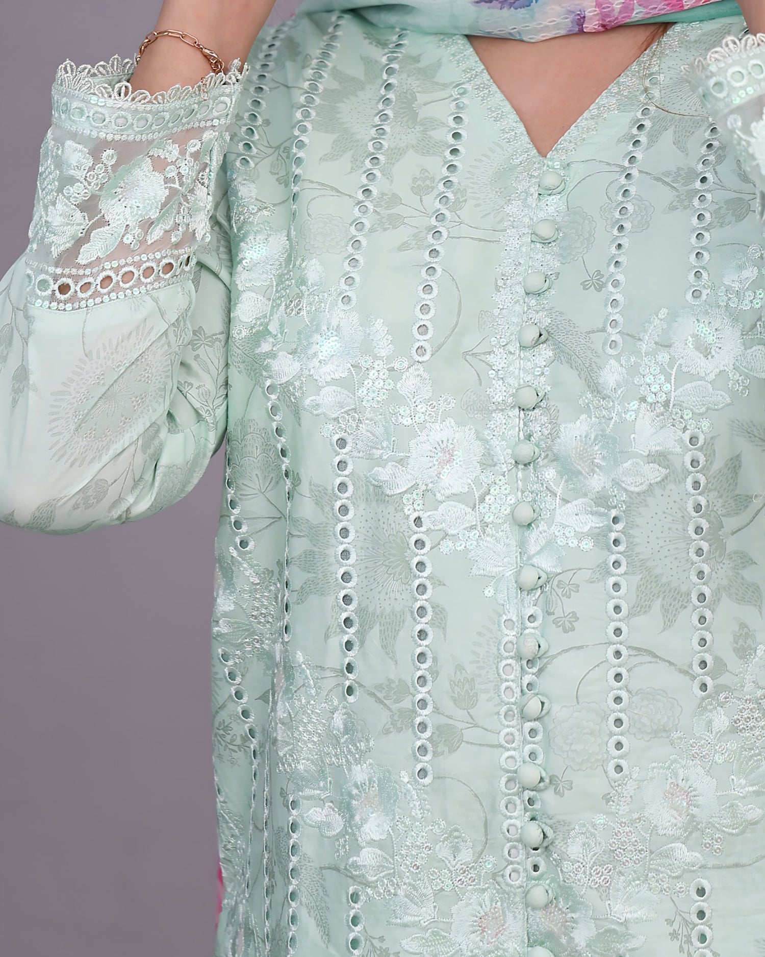 Exquisite Designer Printed Embroidered Shirt, Masterfully Crafted Hem, Featuring Delicate Organza Schiffli Work, Radiant...