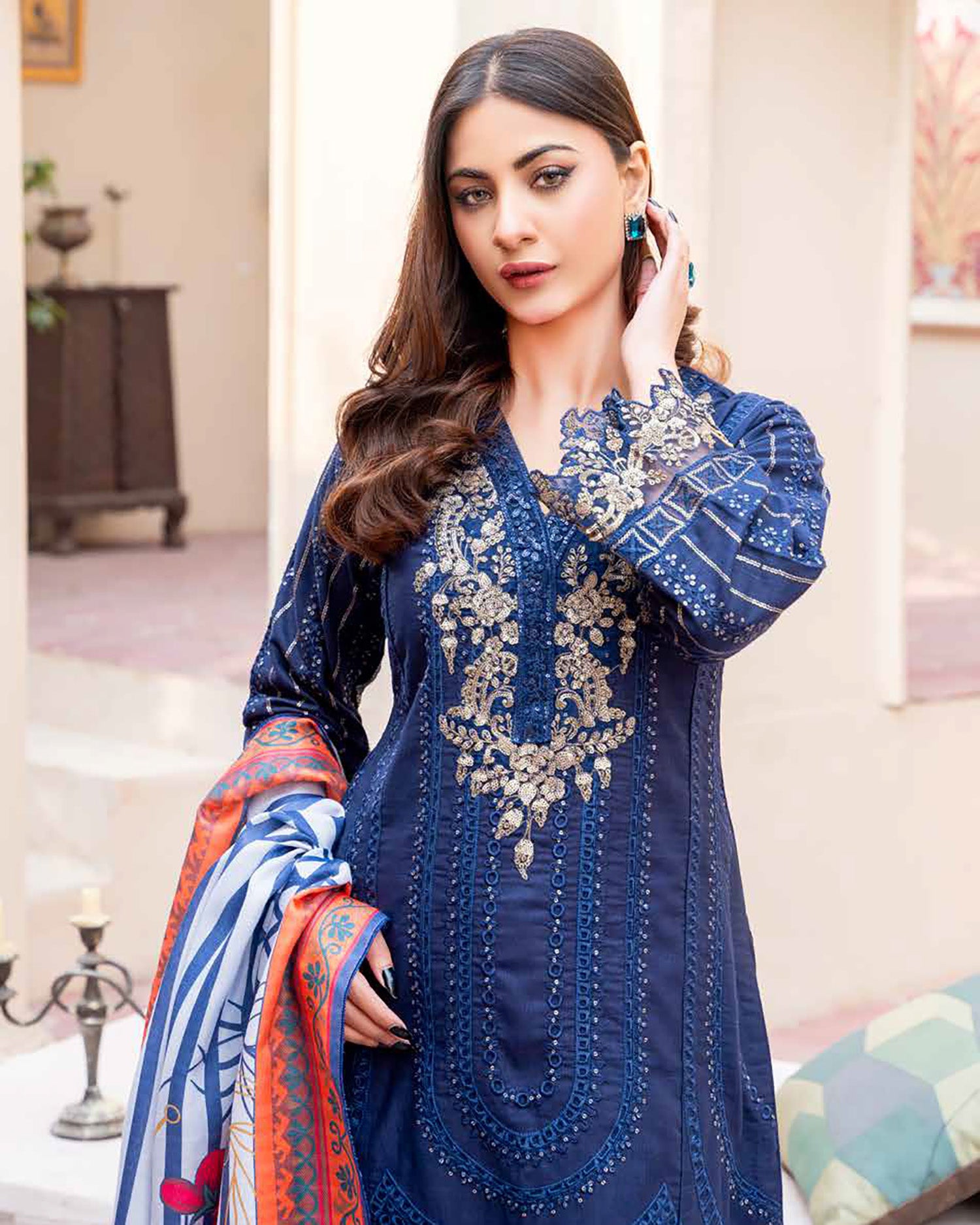 Designer Three Piece | Embroidered - Ashi | Luxury Khaddar