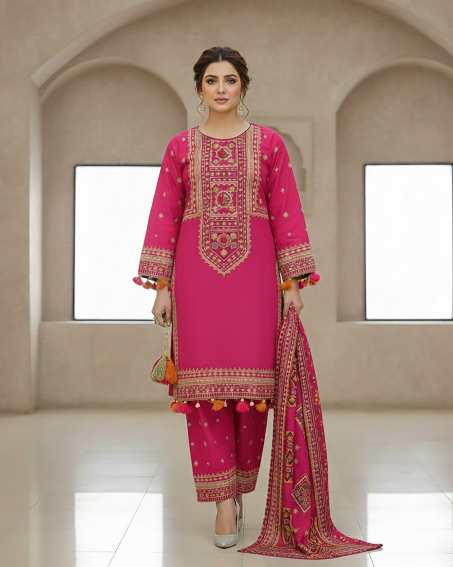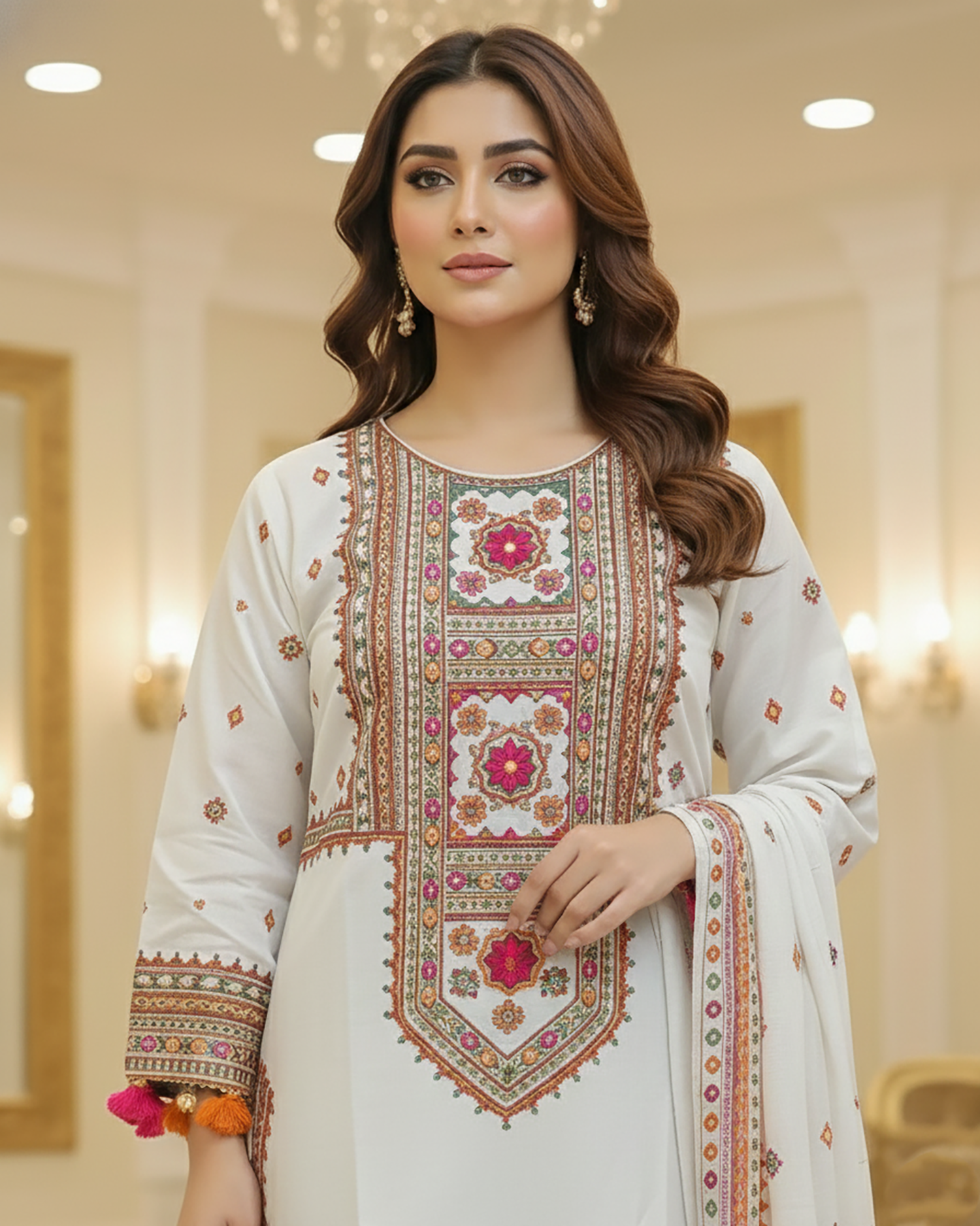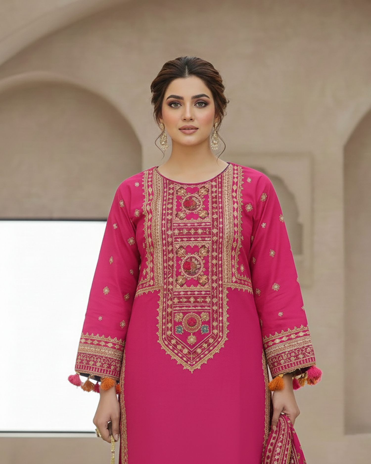 Designer Three Piece | Embroidered - Badshah Begum | Premium Khaddar
