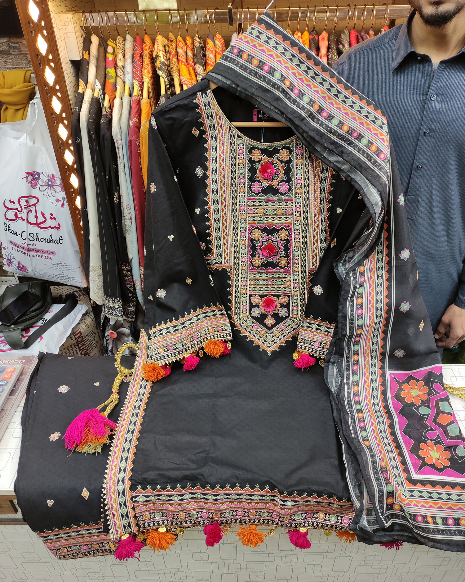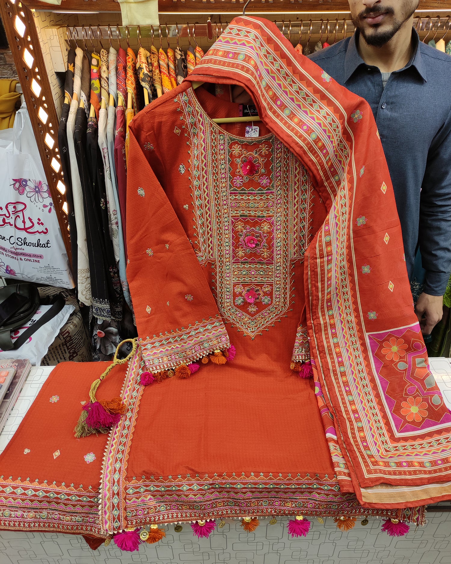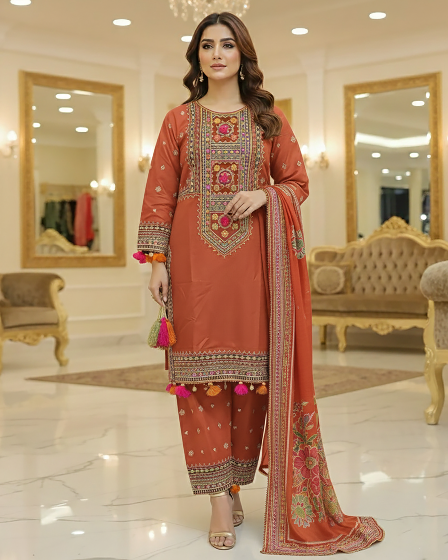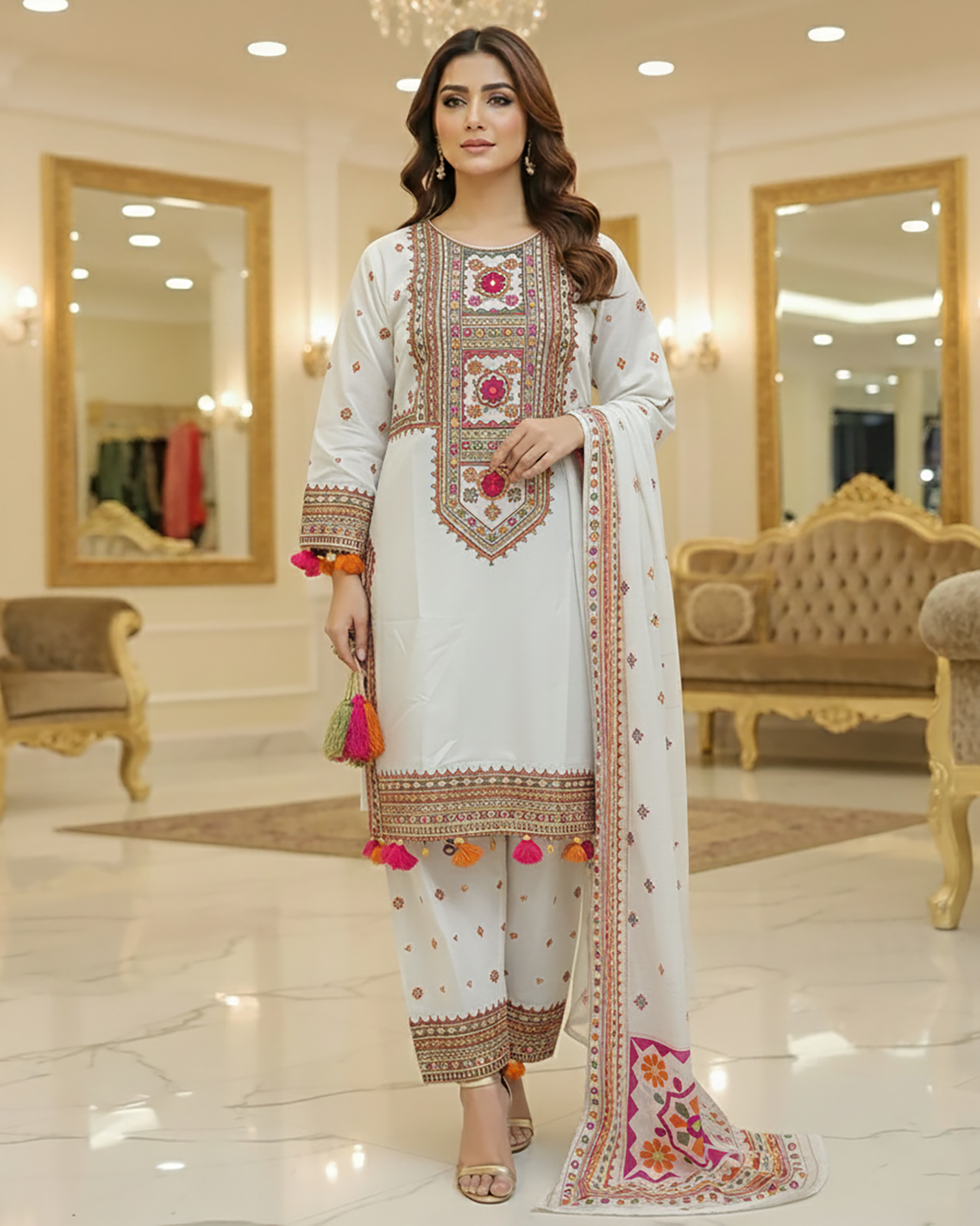 Designer Three Piece | Embroidered - Badshah Begum | Premium Khaddar