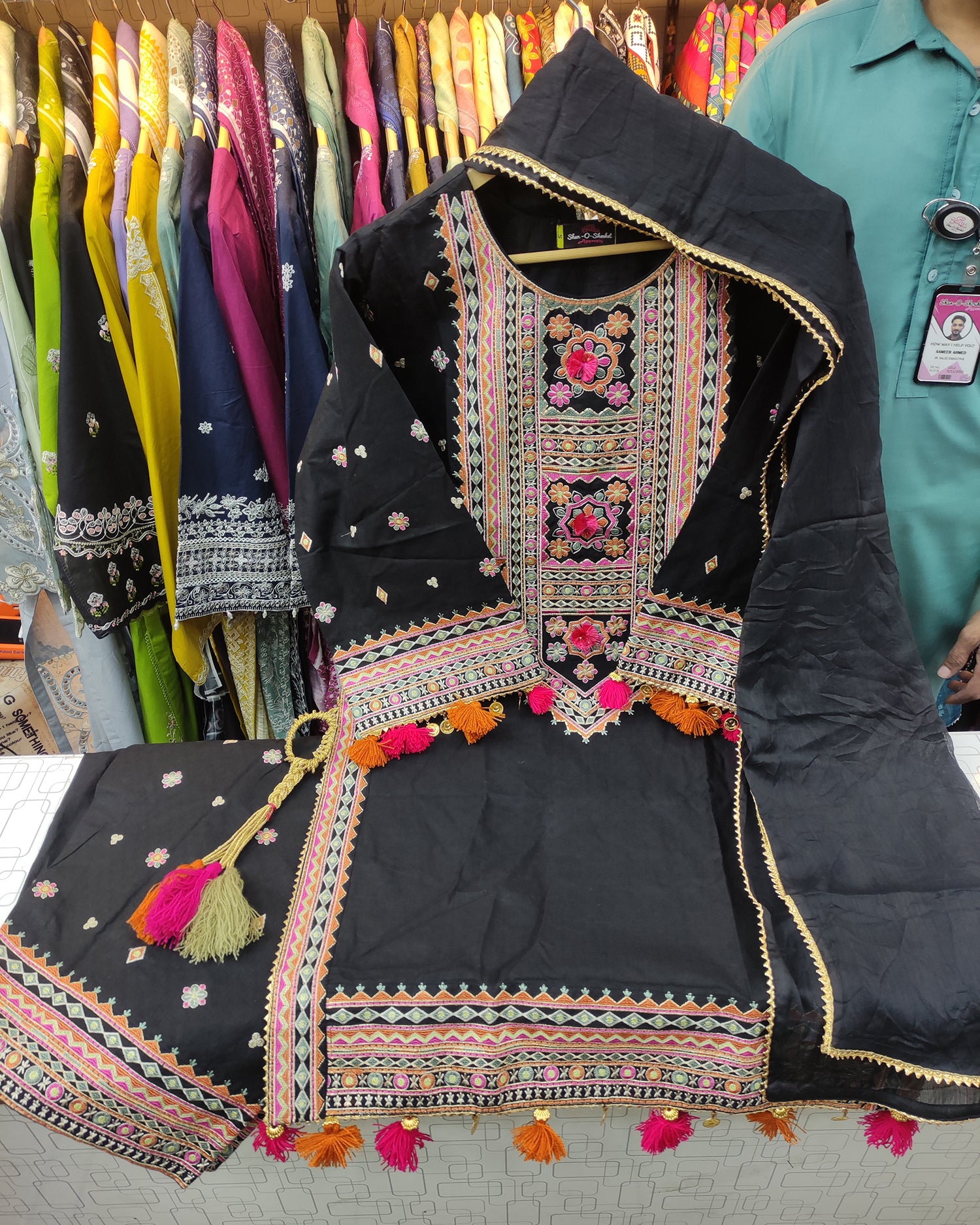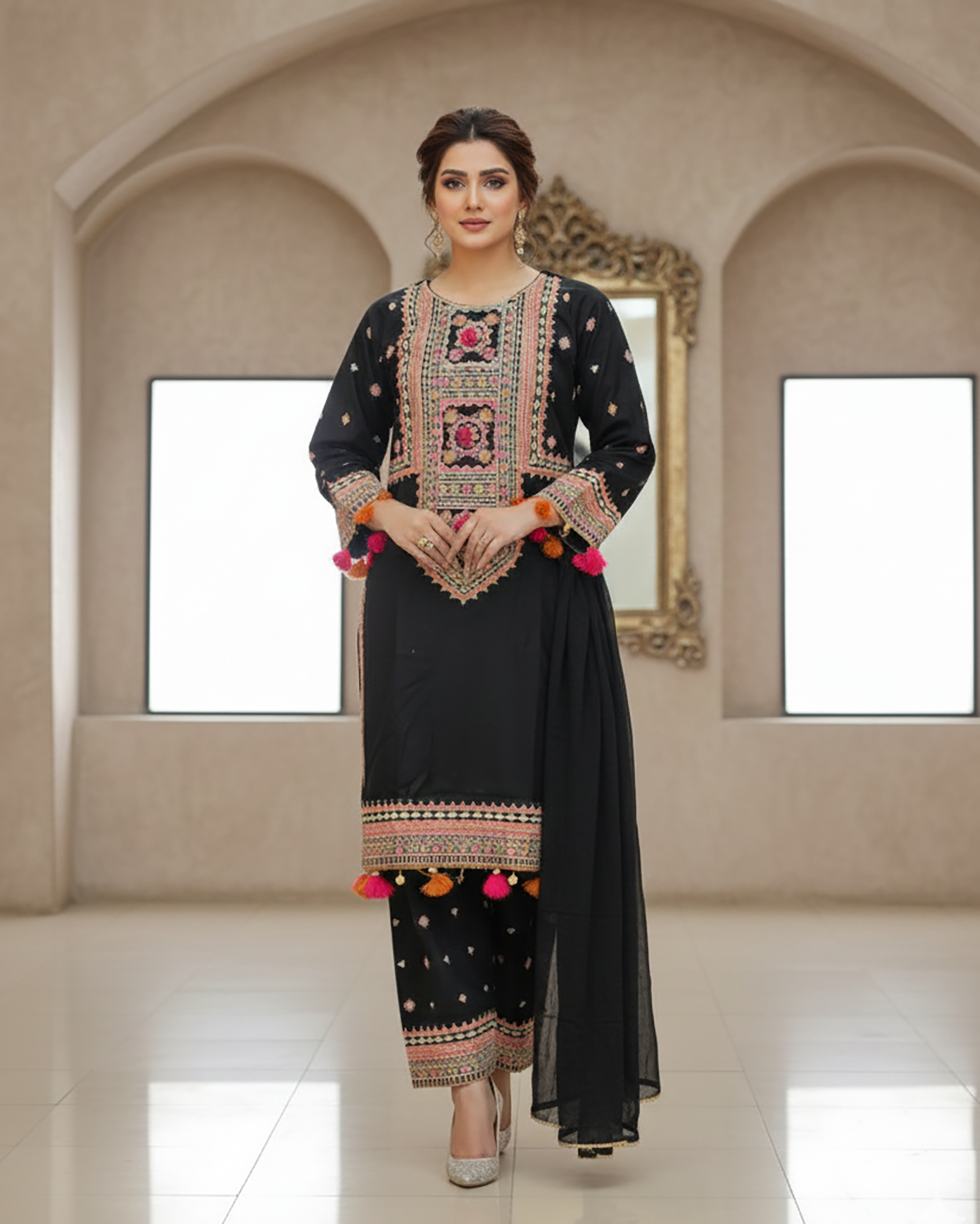 Designer Three Piece | Embroidered - Badshah Begum | Premium Khaddar