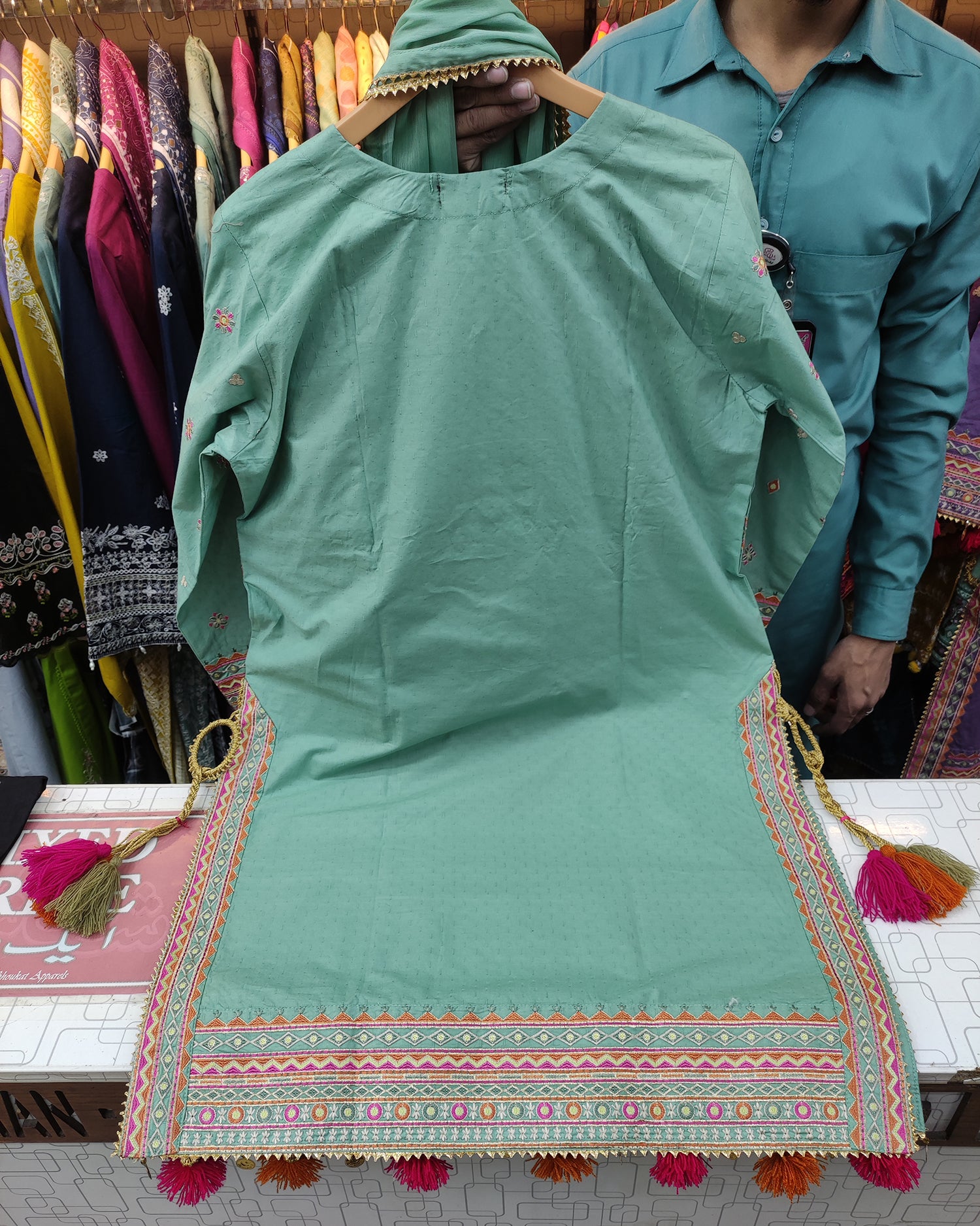 Exquisite Designer Multi Heavy Front/ Back Embroidered Shirt, Masterfully Crafted Hem, Featuring Delicate Pom...