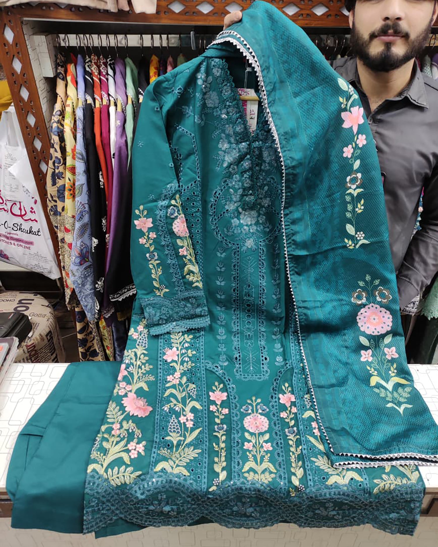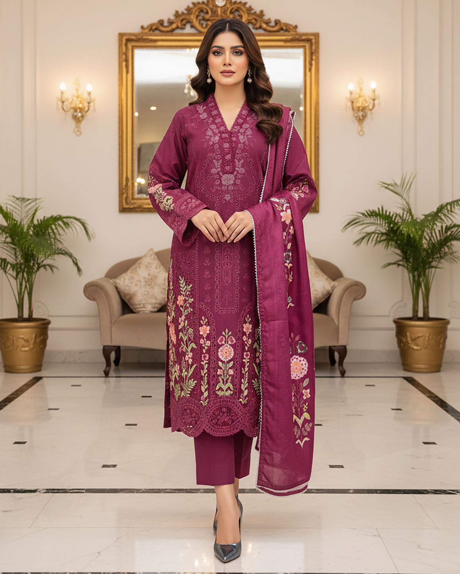 Designer Three Piece | Embroidered - Mehrmah | Premium Cotton Khaddar