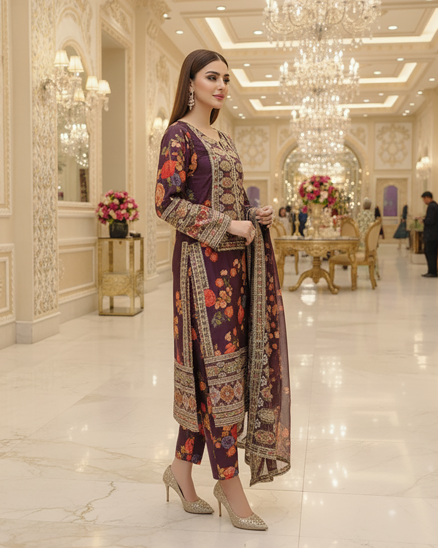 Designer Three Piece | Embroidered - Nimra | Pure Silk