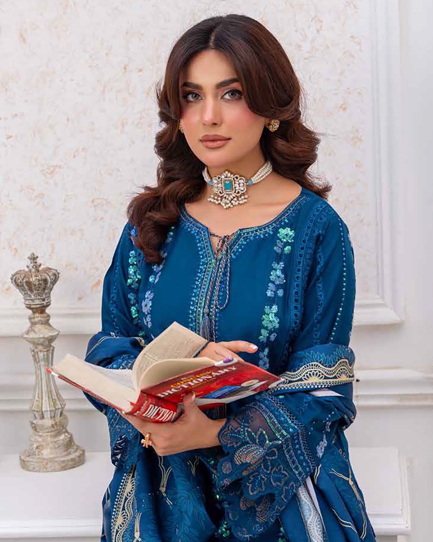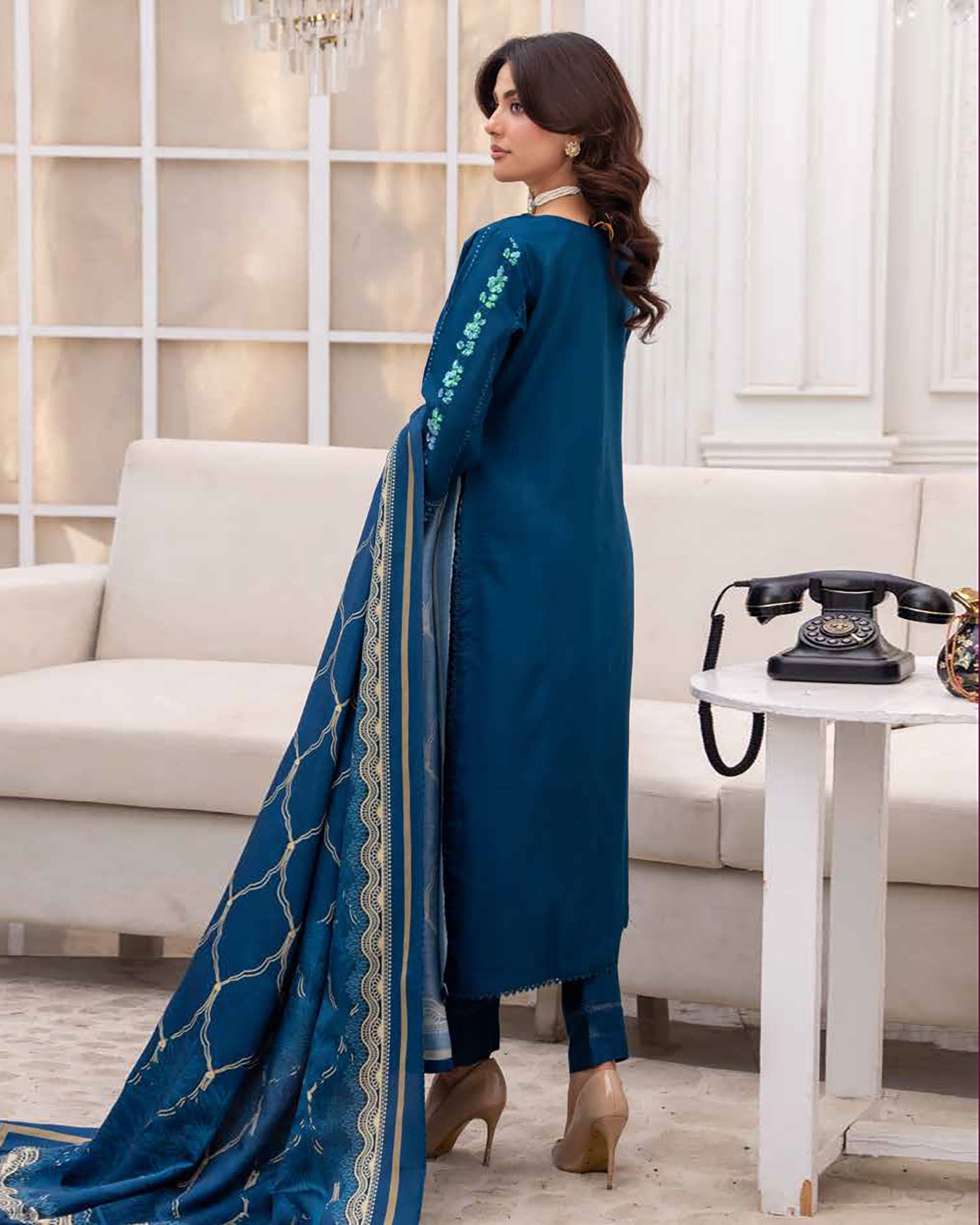 Designer Three Piece | Embroidered - Sadaf | Luxury Dhanak