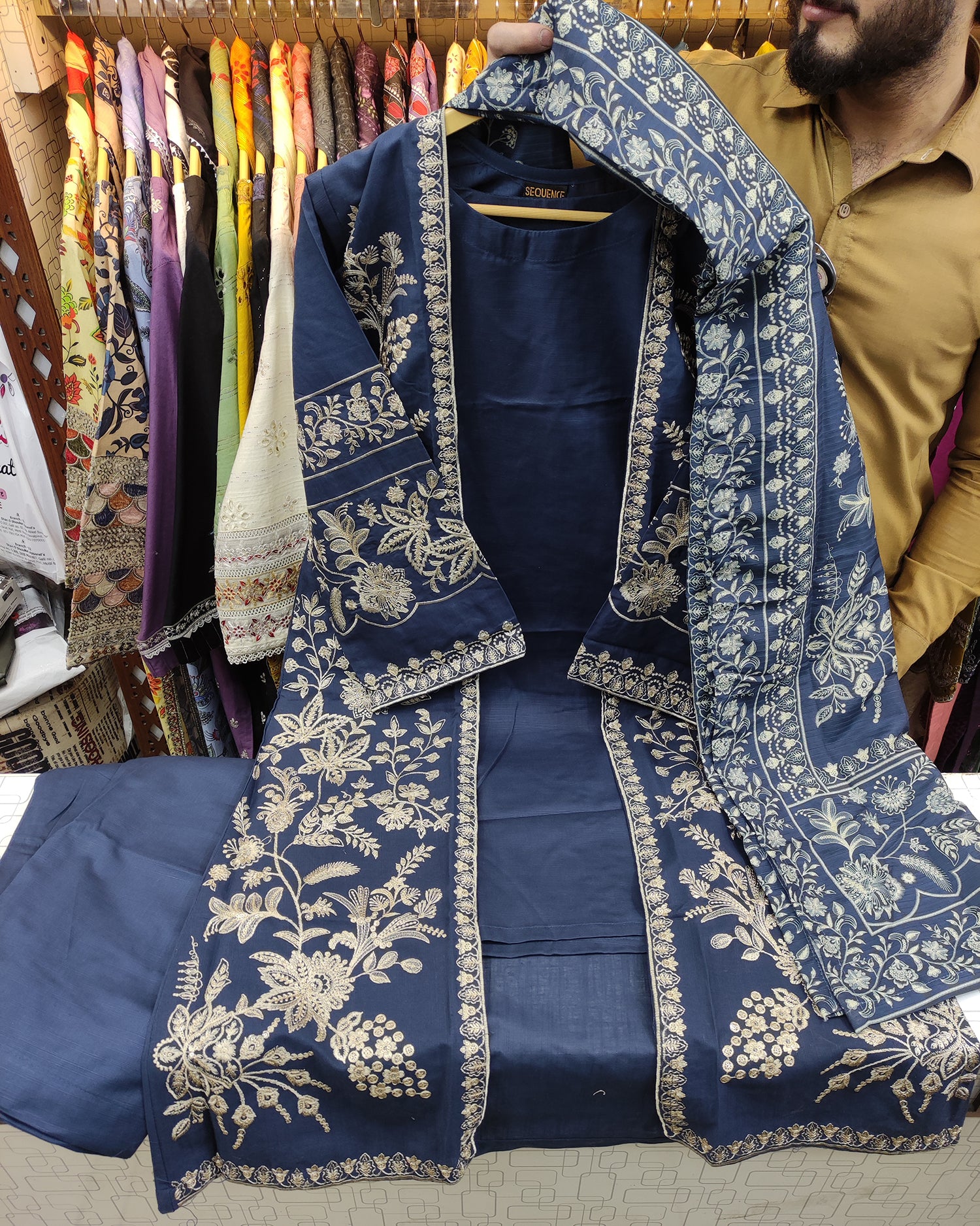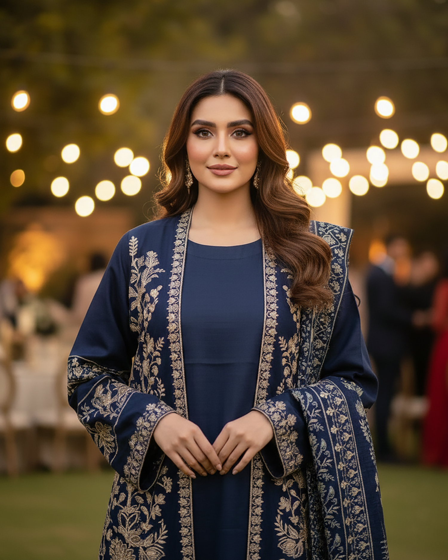 Designer Three Piece | Gown/Inner - Shah Jahan | Premium Khaddar