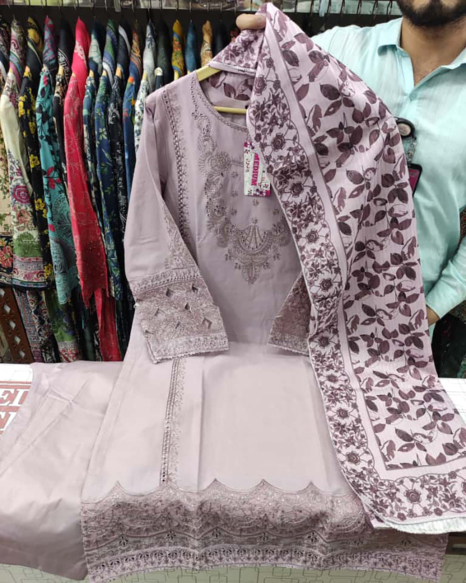 Very Elegant And Beautiful Designer Embroidered Shirt Embellished with Lace, Sequins, Boring Work, Schiffli and Thread work Paired with Warm Winter Digital Printed Shawl and Plain Trousers.