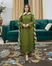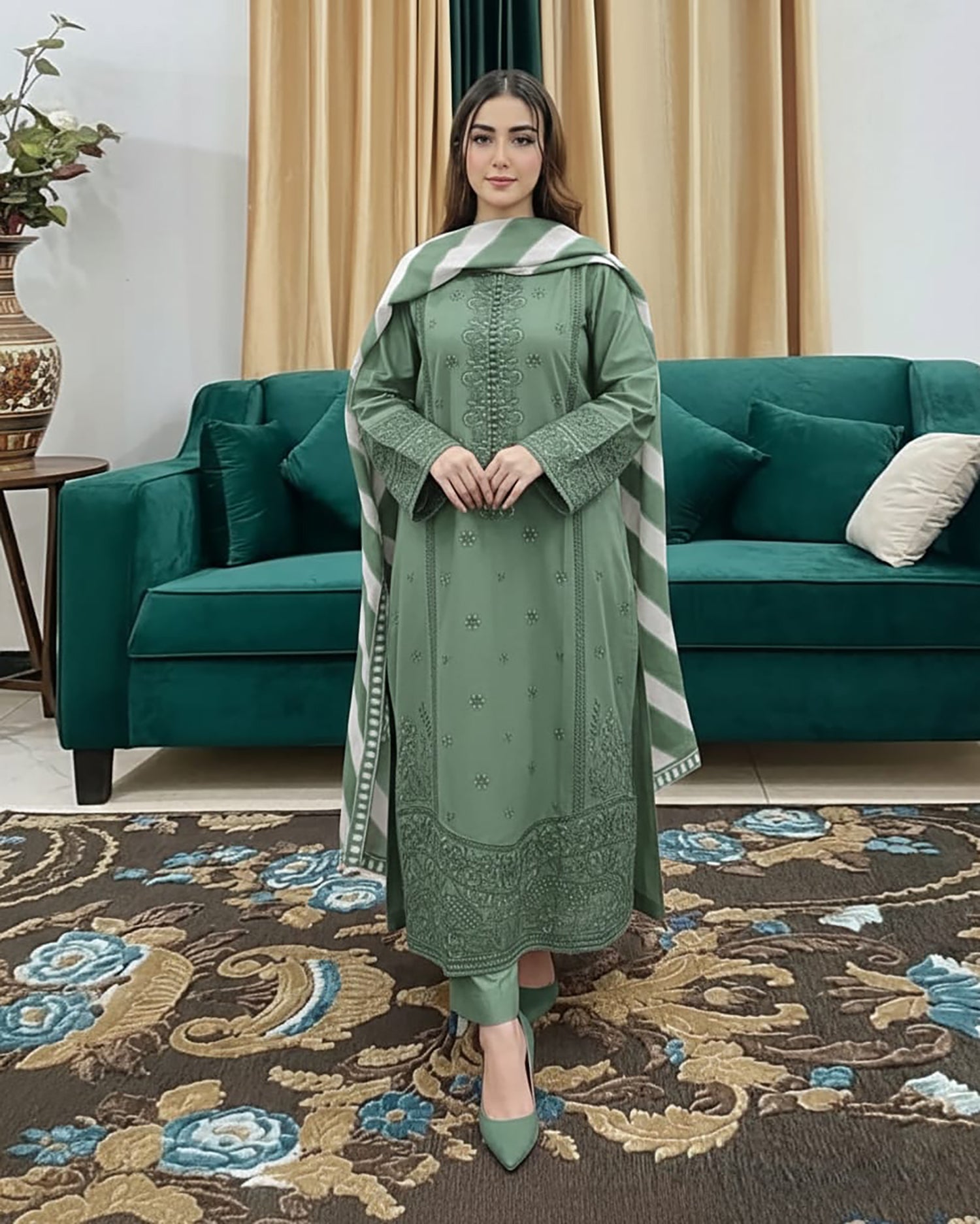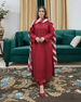 Elegant And Fascinating Designer Embroidered Shirt Embellished With Buttons, Organza Lace, Sequins and Thread Work With Printed Winter Shawl Along With Plain Trousers.