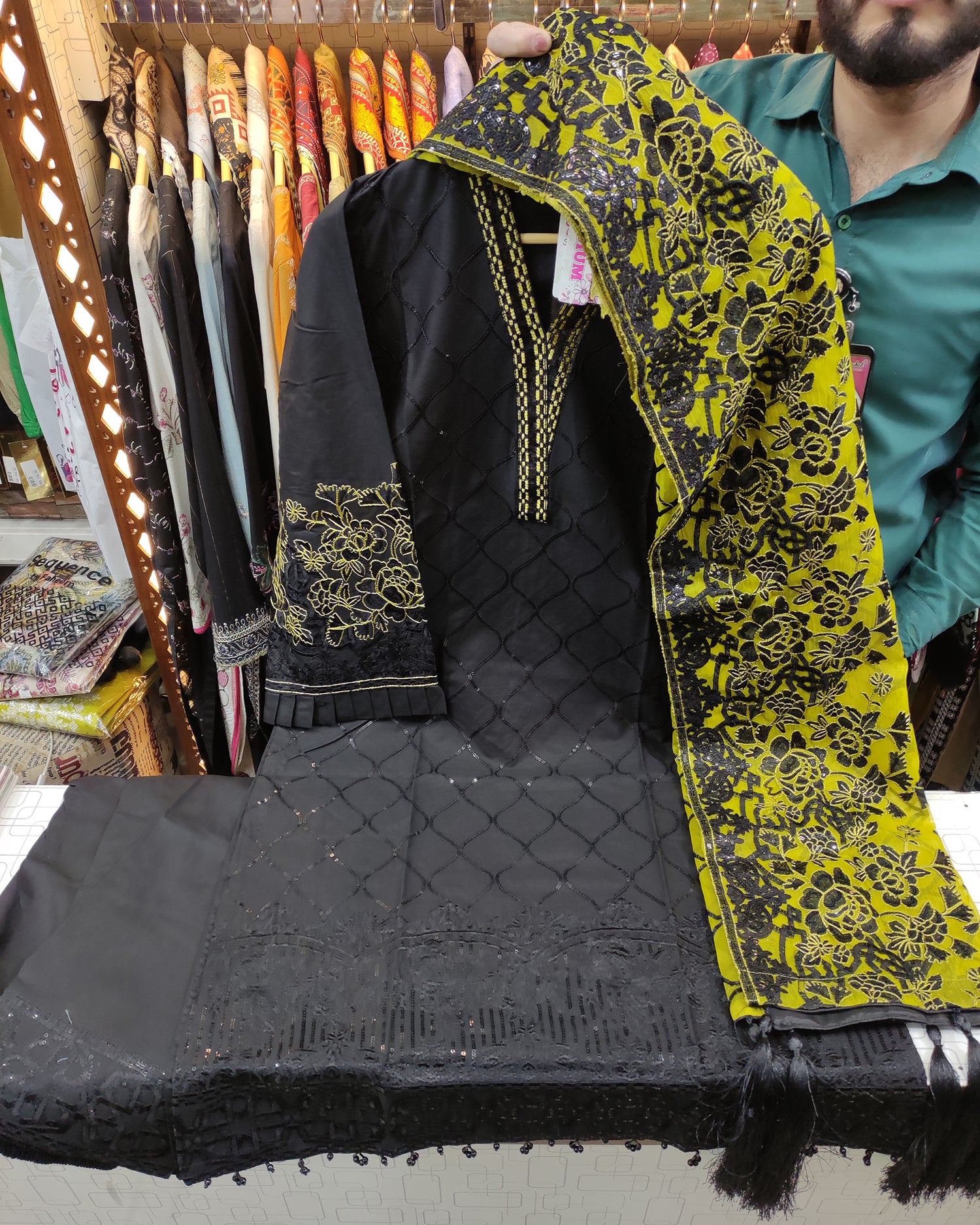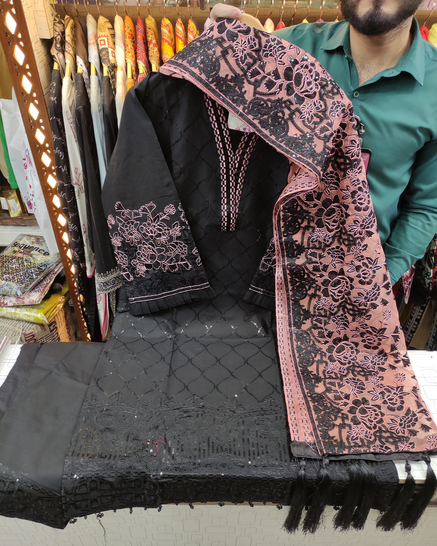 Exquisite Designer Heavy Sequins and Thread Embroidered A-Line Shirt, Masterfully Crafted Hem, Featuring Delicate...