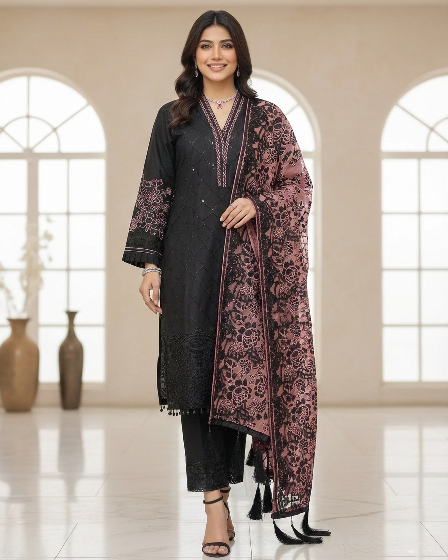 Three Piece Formals | Embroidered - Aswad - Eid Special | Premium Lawn