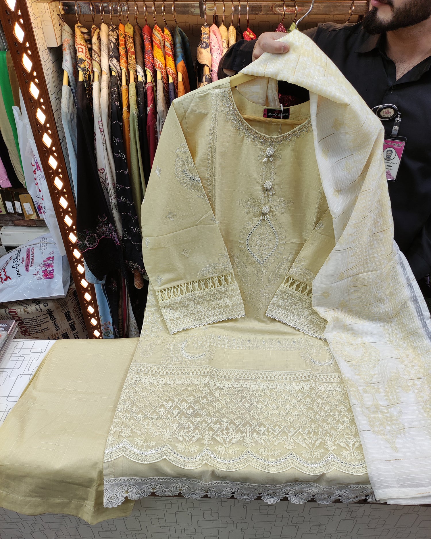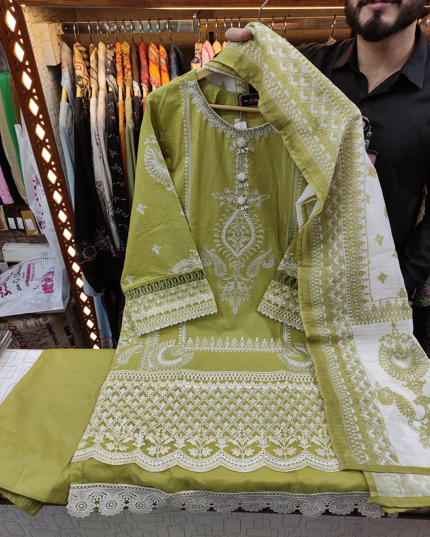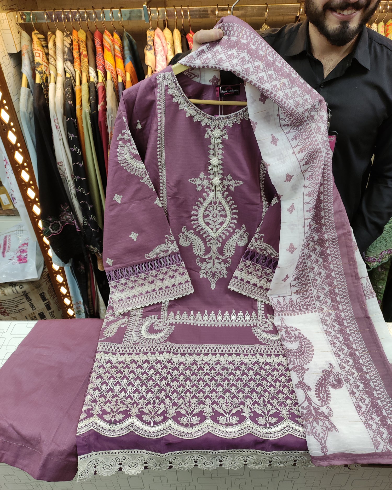 Exquisite Designer Heavy Thread and Panni Embroidered Shirt, Masterfully Crafted Hem, Featuring Delicate Tussles,...
