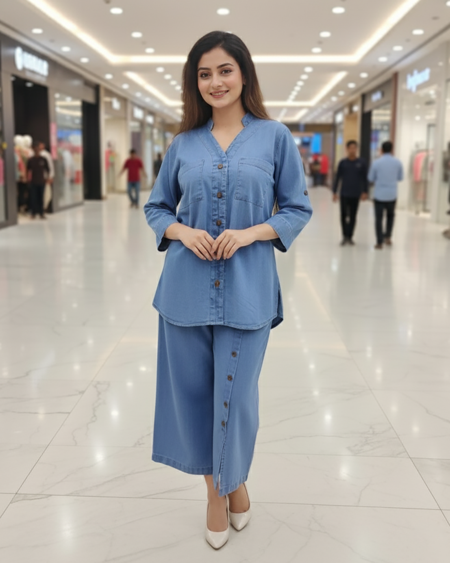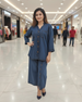 Exquisite Designer Button Down Western Styled Shirt, Masterfully Crafted Pockets, Featuring Delicate Buttons, Elegant Stitching, Intricate Ensemble Timeless Collar, String Cuff on Sleeves paired with One Side Button Down High Waist Flapper.
